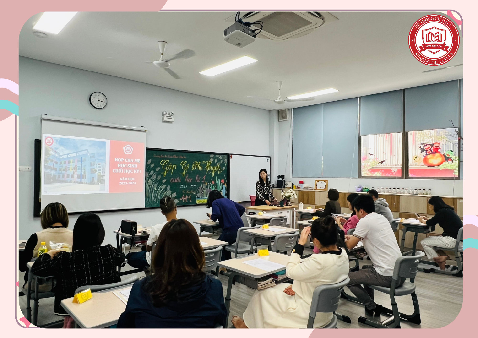 Chiều thứ 7 cuối tuần, ????? ?????? hoan nghênh chào đón Quý Phụ huynh của học sinh Tiểu học đến tham dự buổi họp Phụ huynh học kỳ 1, năm học 2023 – 2024. Buổi gặp gỡ đã diễn ra thành công tốt đẹp cùng những chia sẻ đến từ các Thầy Cô là người giảng dạy trực tiếp ở lớp bao gồm: chương trình tiếng Việt và tiếng Anh.